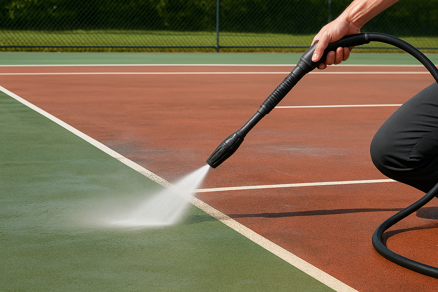Nettoyage multi-sport, cours de tennis et terrain de basket